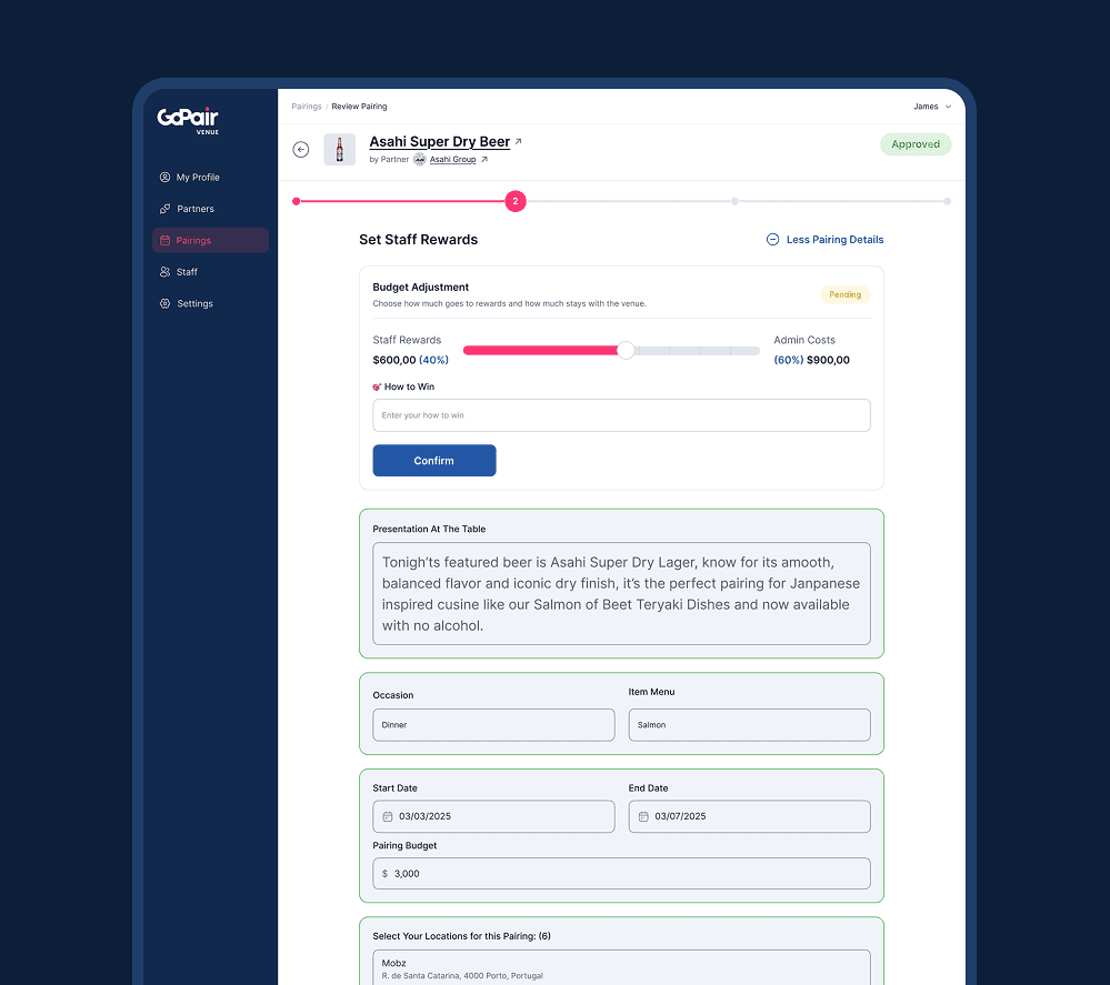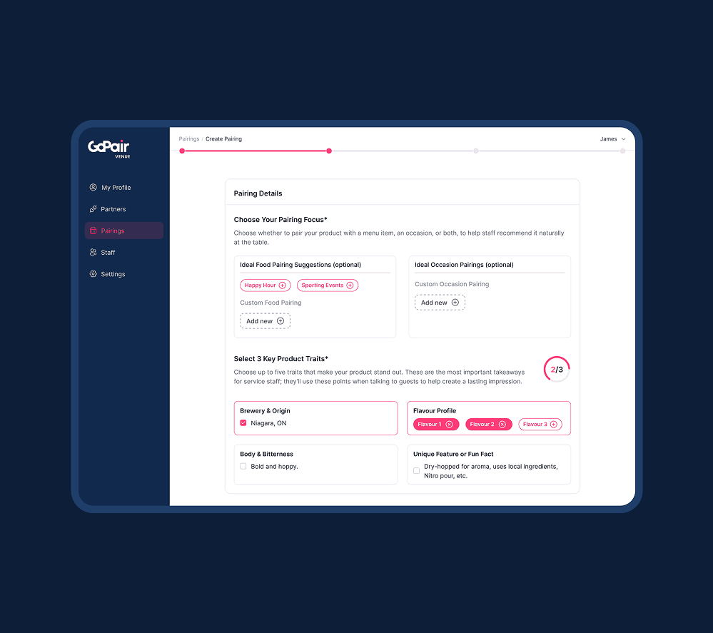 Product/menu management for pairings